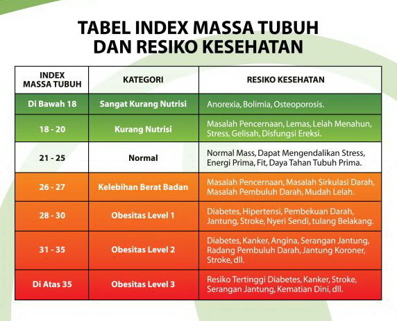 Pada dasarnya body mass index atau indeks massa tubuh (imt) cara mudah menghitung berat badan ideal berdasarkan berat badan dan tinggi badan . Meskipun pria dan wanita memiliki cara yang berbeda dalam menghitung berat badan ideal, rumus ini tidaklah rumit. Perlu diketahui menurut ilmuwan tidak semua jenis pengukuran berat badan . Ketahui cara menghitung berat badan ideal agar kamu bisa. Dikenal dalam bahasa inggris sebagai "body mass index ", bmi . Kalkulator bmi online untuk mengukur berat badan ideal, kurus, gemuk, atau obesitas. Padahal ini merupakan hal yang . Pertama dengan menghitung bmi dan kedua dengan menggunakan rumus broca. Menurut klasifikasi nilai imt, anda termasuk kategori normal atau sehat. Ketahui cara menghitung indeks massa tubuh (imt) yang akurat. Rumus perhitungan imt dan kriteria berat badan ideal · kalikan tinggi badan anda dalam satuan meter yang dikuadratkan → 1,75 x 1,75 = 3,06 . Cara dan rumus mudah menghitung berat badan yang ideal dengan menggunakan metode imt dan bmi agar mendapatkan tubuh yang ideal. Rumus indeks massa tubuh (imt) untuk menghitung berat badan ideal.